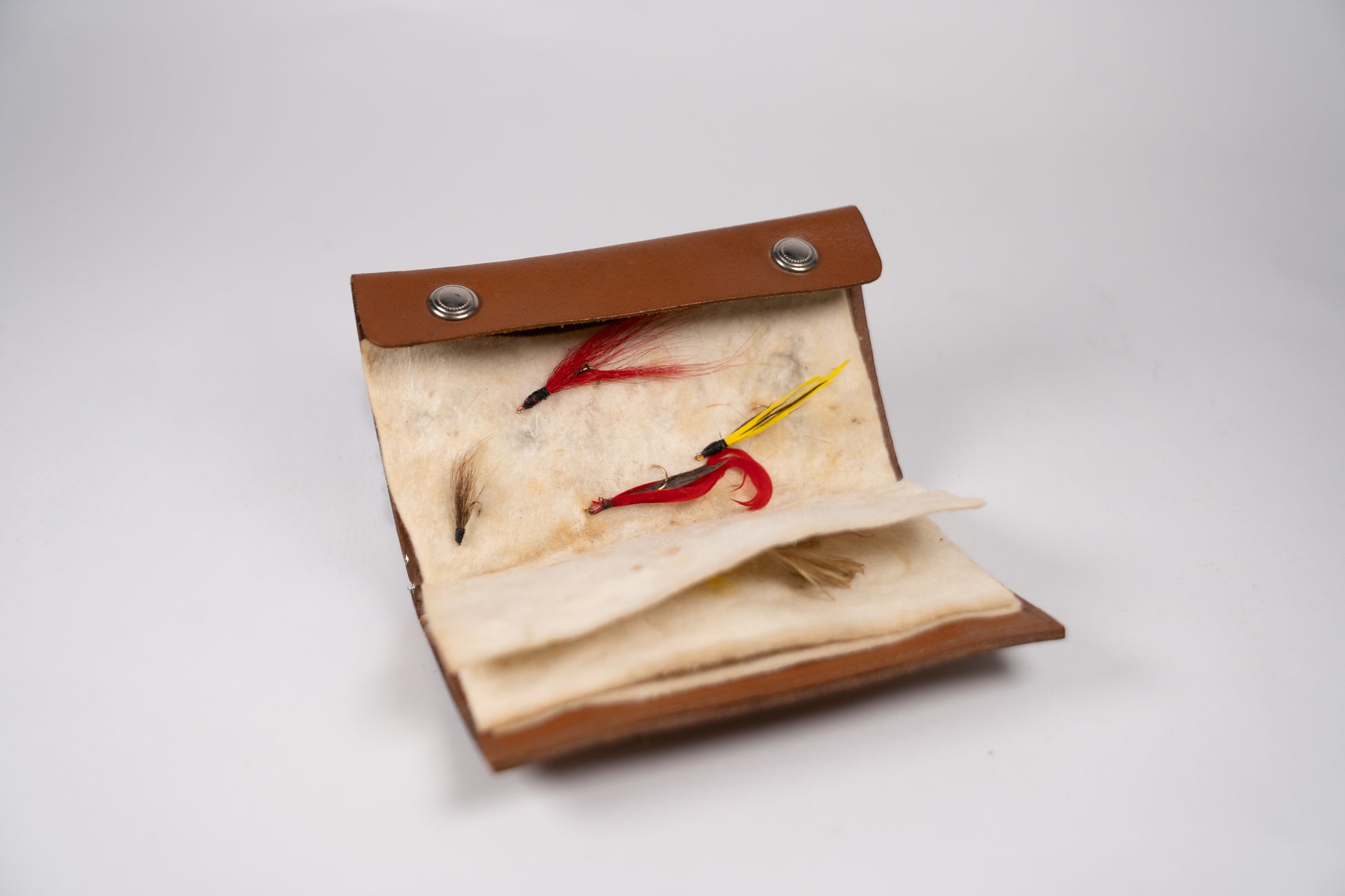 Vintage Leather Fly Fishing Wallet with flies. Lot #81